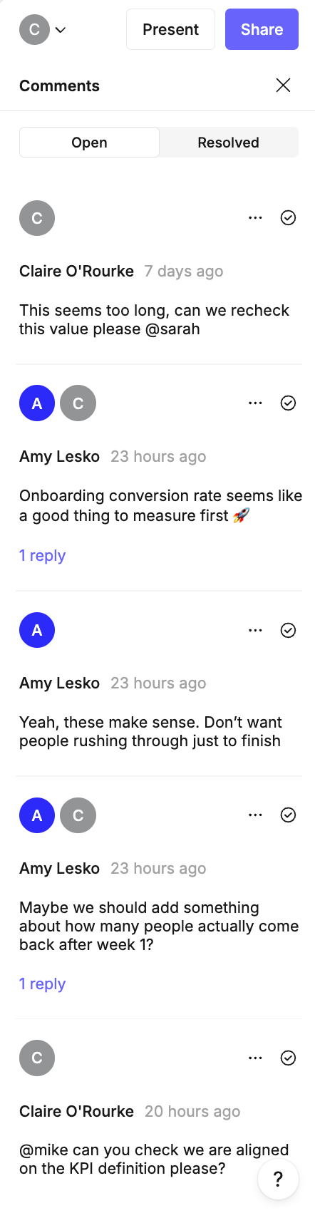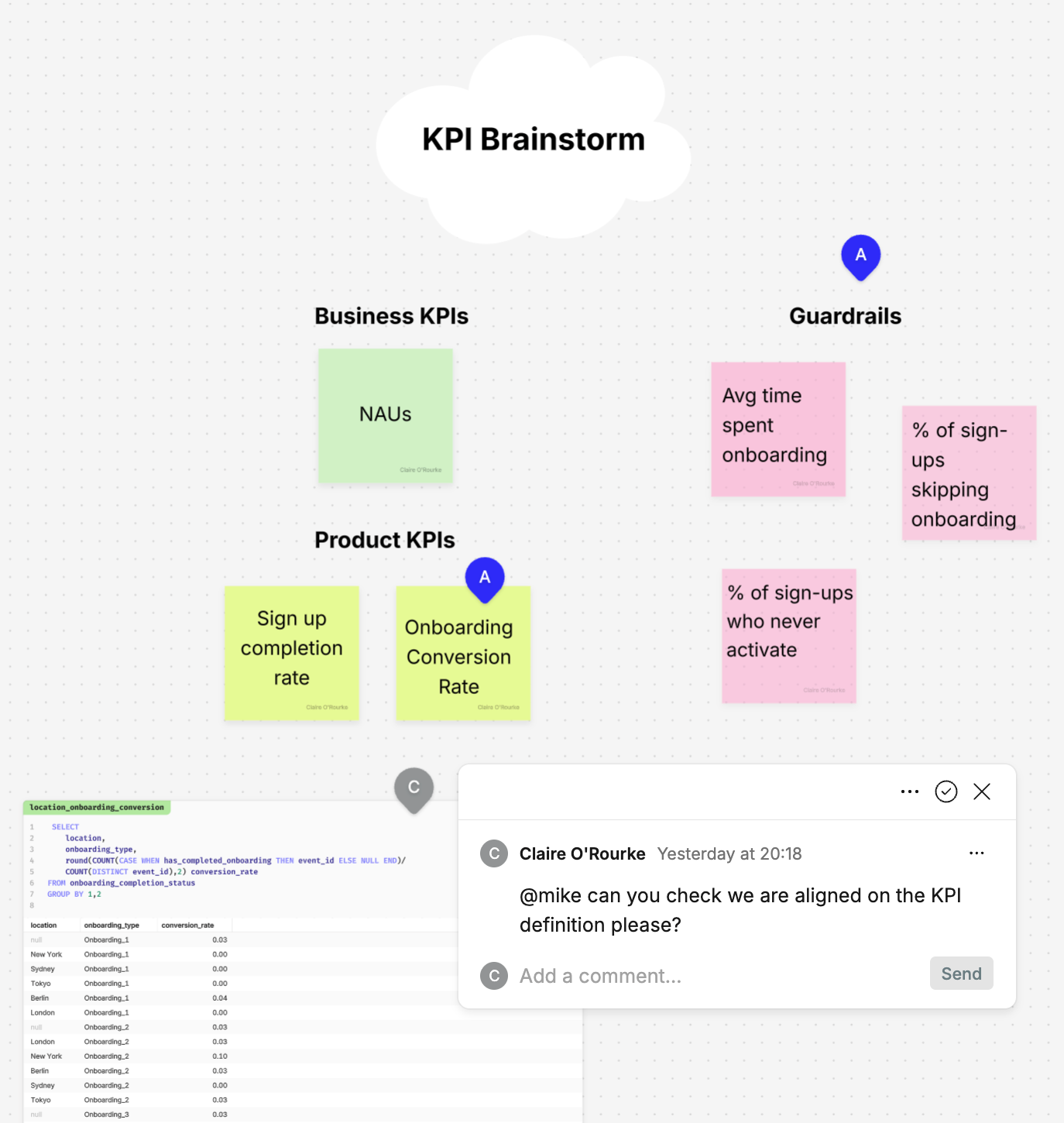 From brainstorming to debugging - by making use of sticky notes and tagging colleagues in comment threads right next to the query or visualisation that’s being discussed.