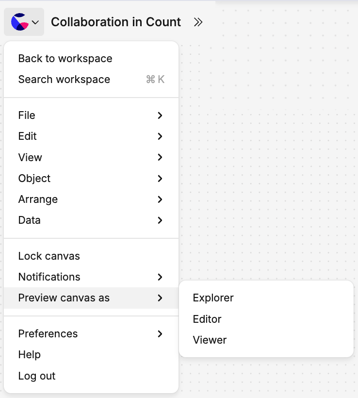 As an analyst, you can preview how other roles will experience the canvas before you decide which permissions to grant.