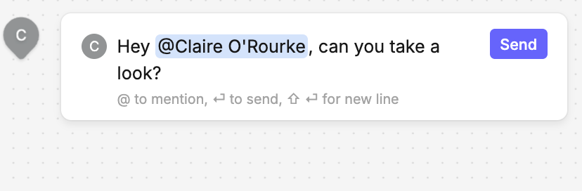 Use comments to tag other users in your canvas.
