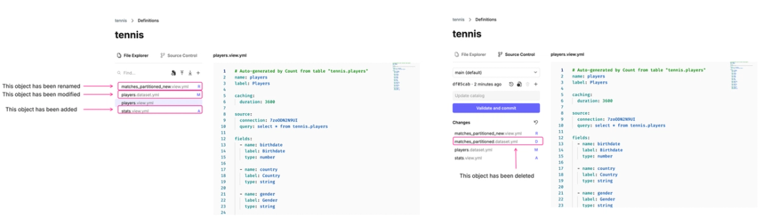 After building and customizing your views and datasets in the catalog, it's essential to commit changes to ensure everything is up-to-date. Committing changes makes sure your updates are reflected in the catalog and available for use in the canvas.