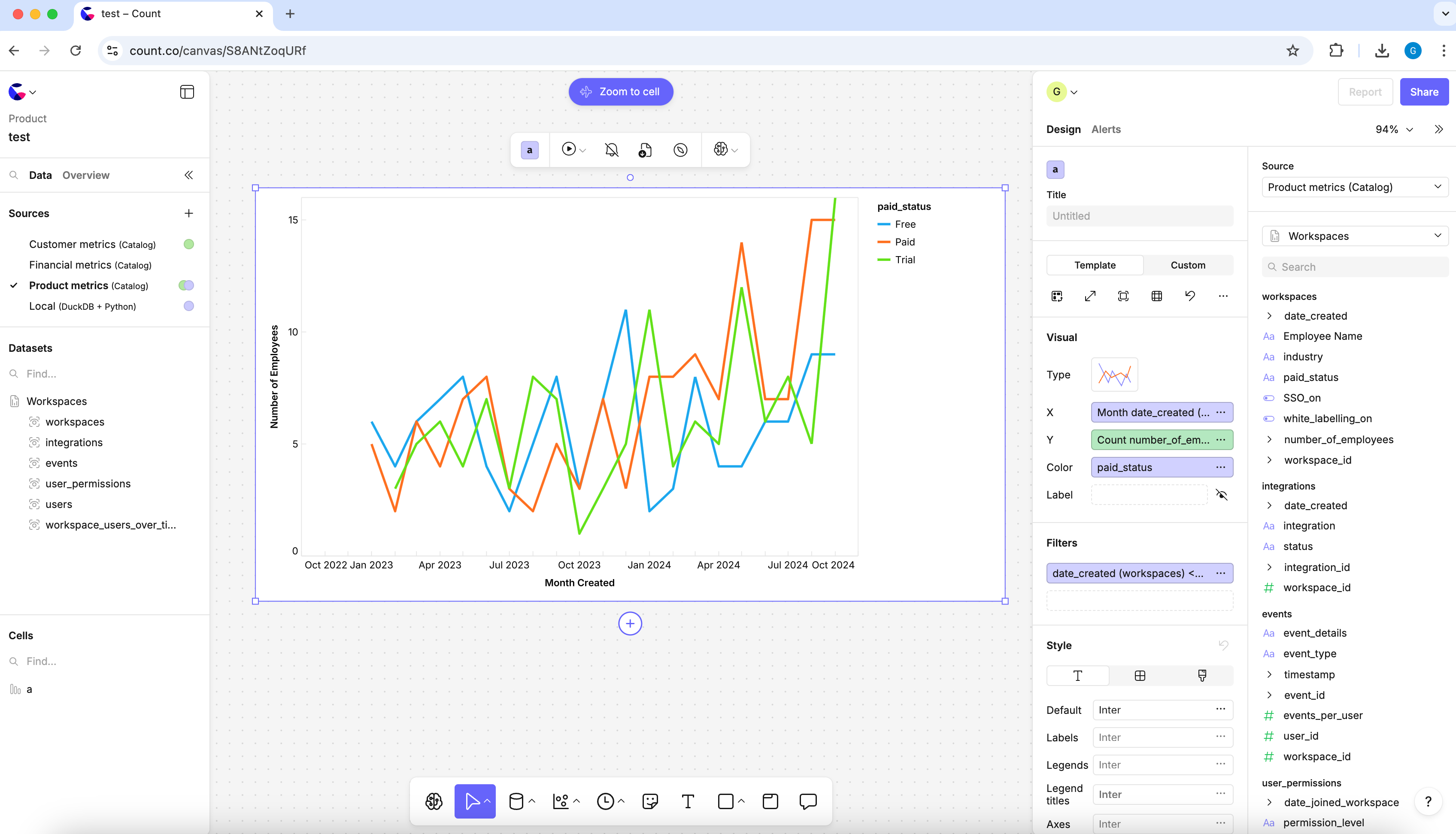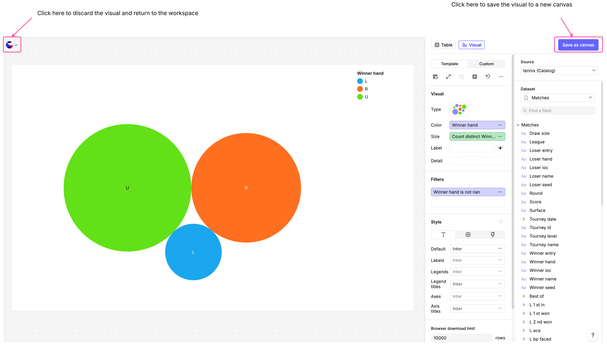 To save any changes you make, click Save as canvas in the top-right corner. This will save the current state of the visual in a new canvas with that single cell. Without saving, any changes will be lost once you navigate away from the page.\