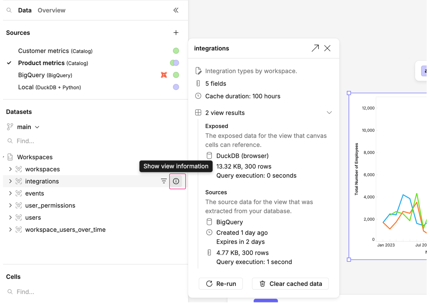Additionally, the caching behavior for results from catalog cells within a canvas follows the default caching settings of the canvas, just like other cells.