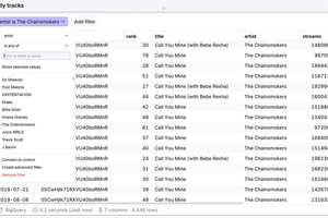 A type of control cell that directly presents all fields in a table (as selected in the right-hand design bar) with a built in mechanism for adding a filter.