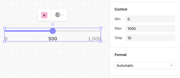 Additional configuration options are available for slider controls - see the right sidebar while a slider control is selected:
