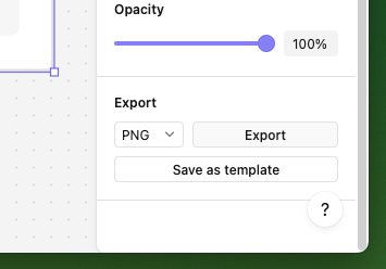 To download an image file, just select the objects to be exported and choose the PNG option in the Design sidebar. Clicking the Export button will download a .png file to your computer.
