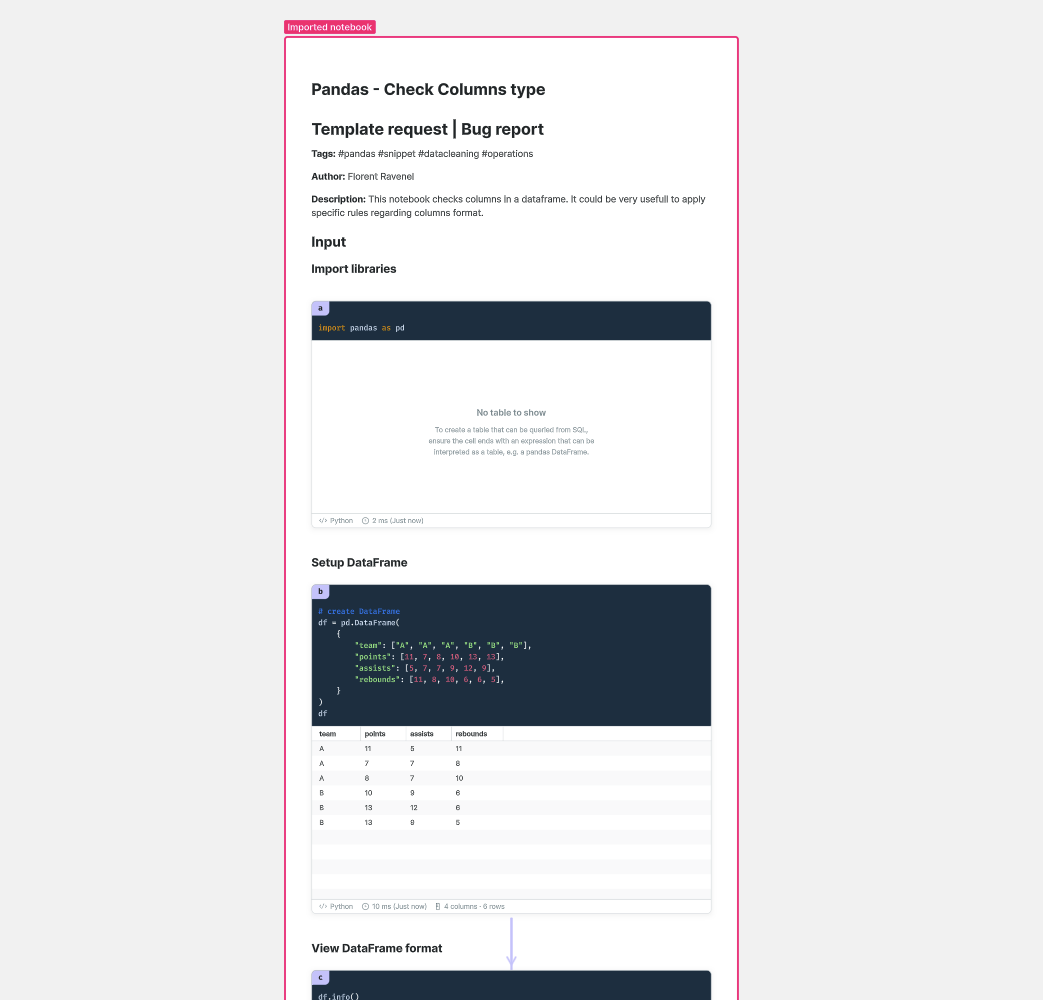 Notebooks must be in .ipynb format to be imported. Once the notebook is loaded, Count will convert all markdown and cell blocks into rich text and Python cell objects, then create the DAG linking the cells.