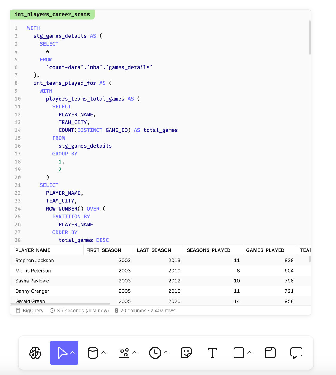Clicking the explosion button will automatically take your CTEs and represent them as connected cells. This makes it easier to understand your query, debug, and communicate with others.
