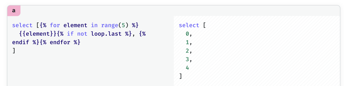 Jinja is a templating library written in Python, traditionally used for rendering HTML web pages. However, the jinja library can be used to generate any type of text, and in Count you can use it in SQL cells to write queries.