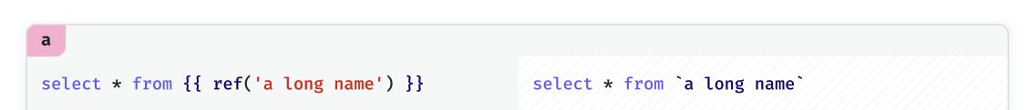 The ref macro formats strings as SQL identifiers, adding delimiter characters and escaping as required by your database: