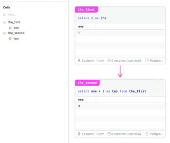 You can query other cells in SQL just as easily as you can a database. Regardless of the cell type, under the hood each cell is a table with columns. Just use the same syntax to reference a cell by name: