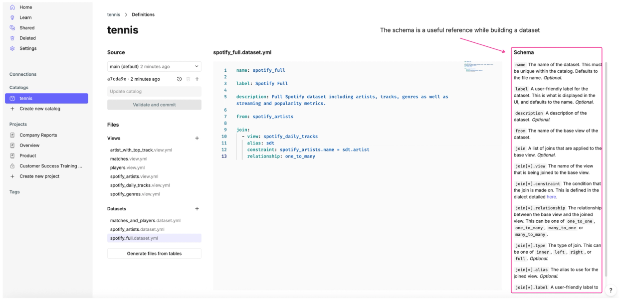 When the same view has been joined multiple times in a single dataset, using label makes the dataset easier to navigate in the canvas. In the canvas UI joined views are displayed together when their dataset is selected.