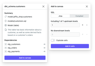 If enabled, models are exploded into CTEs before being added to the canvas. When a model has been exploded, the exploded cells are wrapped in a frame.