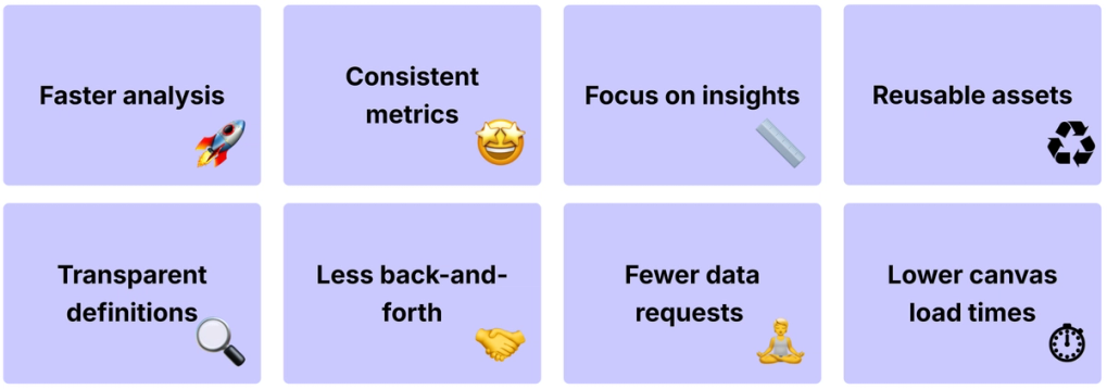 • Reduced errors and inconsistencies align teams on shared definitions like revenue or retention