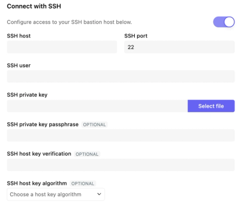 Count now supports SSH connections to your PostgreSQL database, via a bastion host.