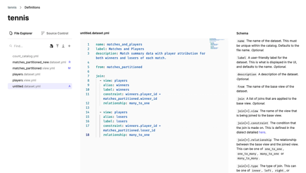 Each dataset is stored in a separate YAML file and can be built using one or more views. There are two ways to specify the views for a dataset: