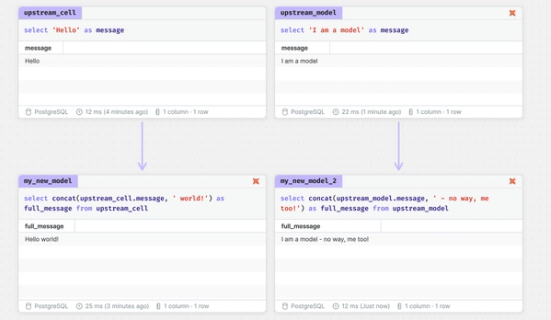 • my_new_model refers to cell upstream_cell, so upstream_cell is included in my_new_model as a CTE.