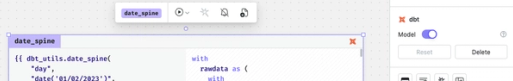 Any cell can be annotated as a dbt model using the toggle in the cell controls. If enabled, a dbt icon will also appear in the corner of the cell.