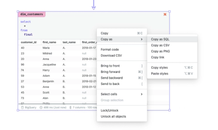 Selecting this option makes it possible to customise the number of upstream cells included in the exported SQL by selectively treating cells as dbt models. Use this option to generate code that is compatible with dbt.