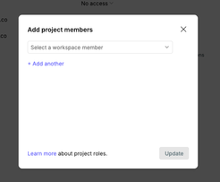 3. Add members from your workspace and assign appropriate roles. The roles you assign will determine the level of permissions each user has when accessing the catalog within the project.