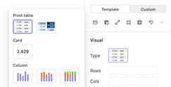• Select a template — choose a template by clicking the template preview image next to Type. Available categories are: Pivot table, Card, Column, Bar, Line, Area, Scatter, Hierarchy, Flow and Statistics.