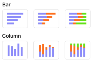 They make it easy to compare magnitudes between groups, see rankings, or show parts of a whole when stacked. The only difference is orientation: bar charts run horizontally, while column charts run vertically.