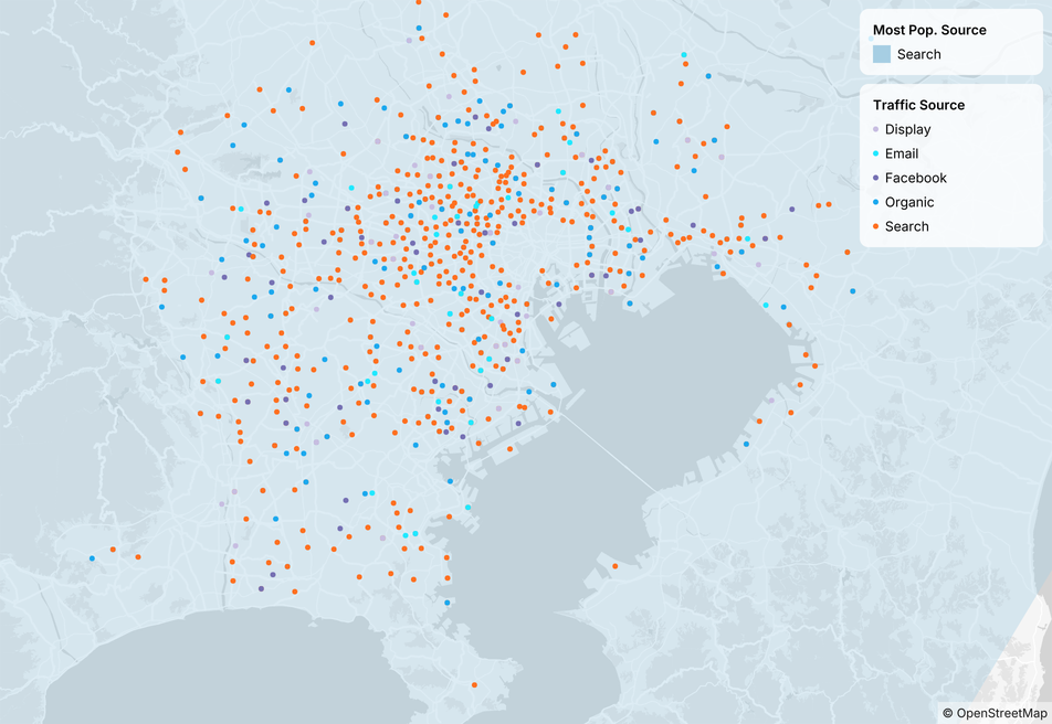 Maps plot data as point, geoshape, or text on geographic maps. Count uses OpenStreetMap for map base layer.