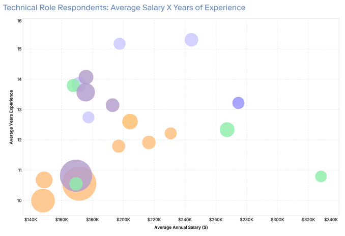 A bubble scatter variation adds a third measure by changing the size of each point.