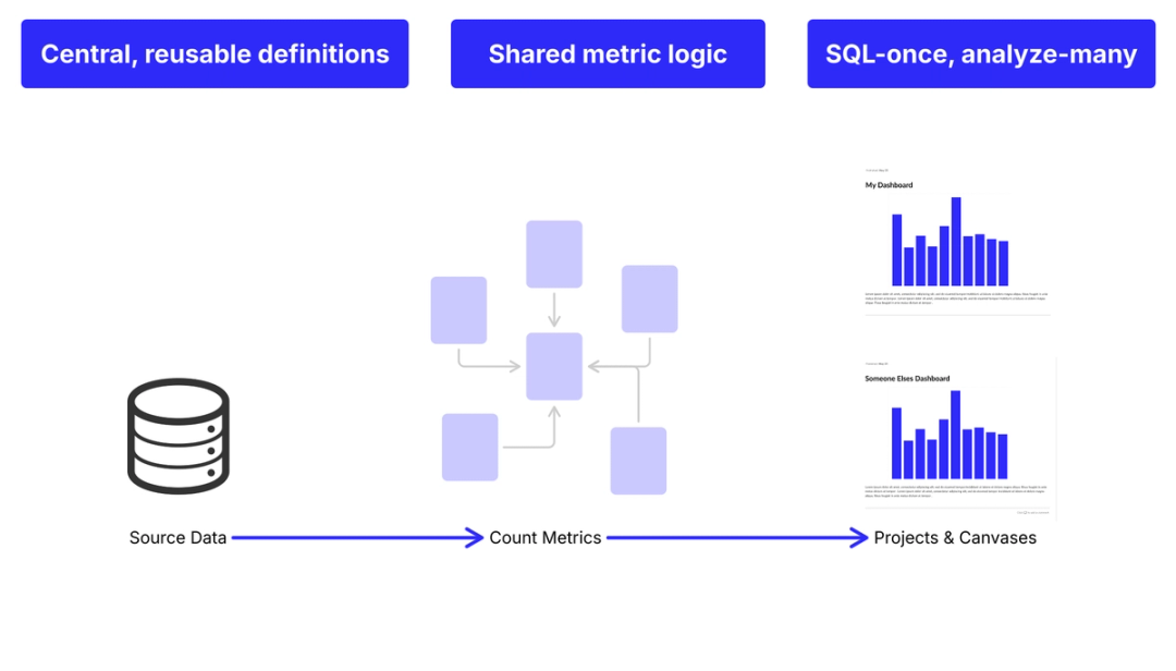 By creating reusable definitions for key metrics like revenue or retention, it helps teams stay aligned and reduces errors. Dashboards load quicker, insights come faster, and everyone—from beginners to data experts—can explore data without friction.