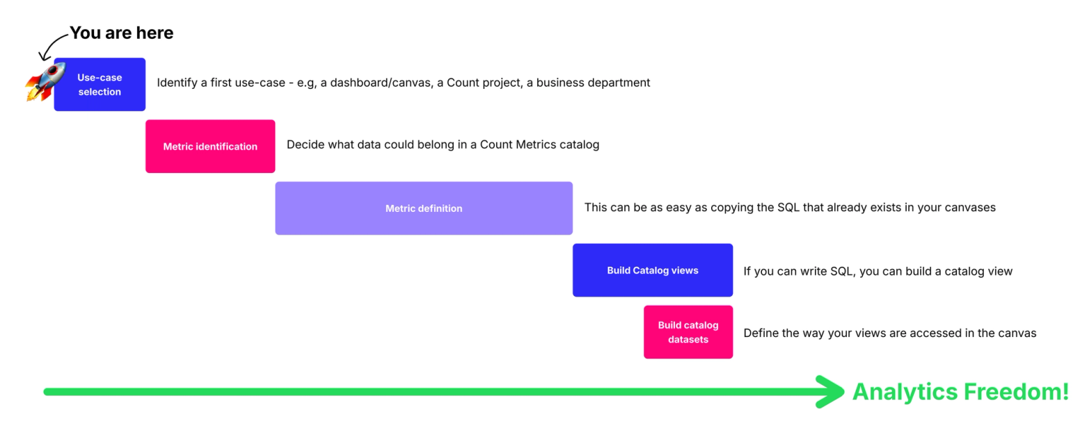 Focus on building your catalog around common metrics, frequently reused logic, and business-critical KPIs. Prioritize definitions that reduce confusion across teams. Start with what’s most impactful and broadly shared, so everyone benefits from consistent, trusted data.