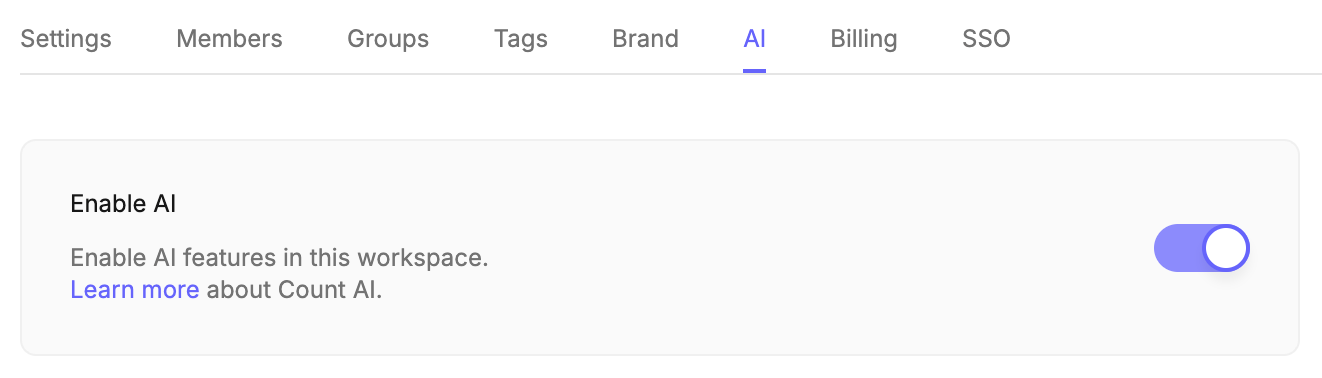 Count AI is disabled by default for workspaces created before November 17, 2025.