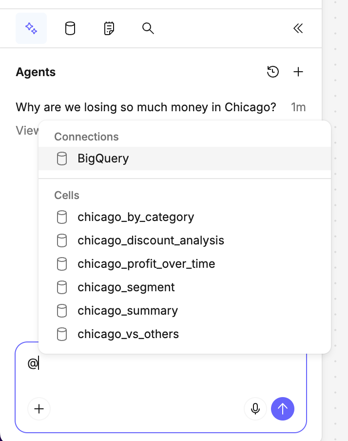 You can manually supply the agent with specific canvas content (like a cell, sticky note, or CSV) so it understands exactly what to reference. You can do this by: