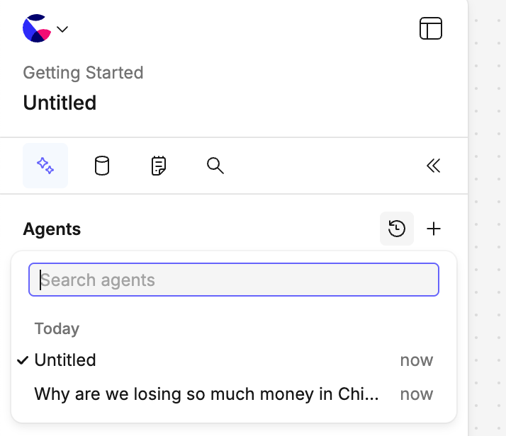 - Click the ✨ Sparkle icon in the left sidebar to open the Agents panel.