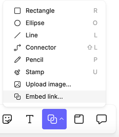 • Embed – The content is shown directly in the canvas (e.g. a YouTube video or Figma file).