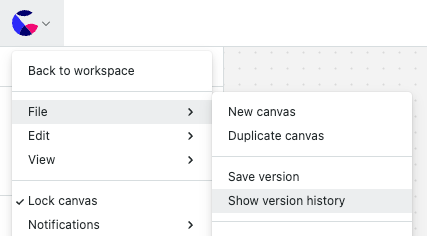 The version history pane displays all versions of the canvas, and highlights the one you are currently viewing.