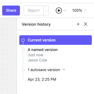 Count will periodically automatically save versions of your canvas, but it is also possible to manually save a version - just head to the version history menu and click the plus icon. You are able to view the version history if you're an editor of this canvas.