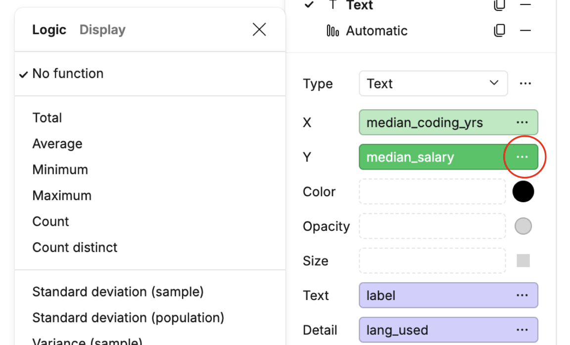 4. Set aggregations – use the ellipses (...) menu next to a field to choose totals, counts, averages, or other aggregates.