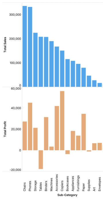 - Layer multiple marks (e.g., bar + line) to enrich a single visual.