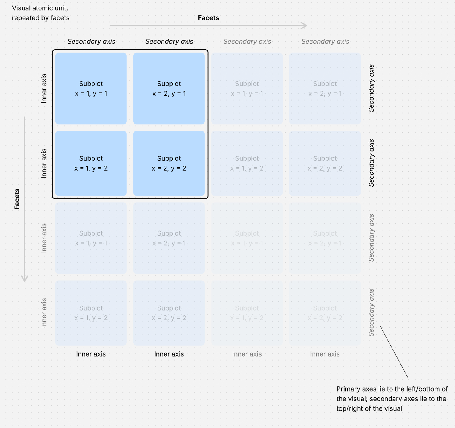 The large-scale structure of a visual is controlled by Subplots, Facets and Secondary Axes