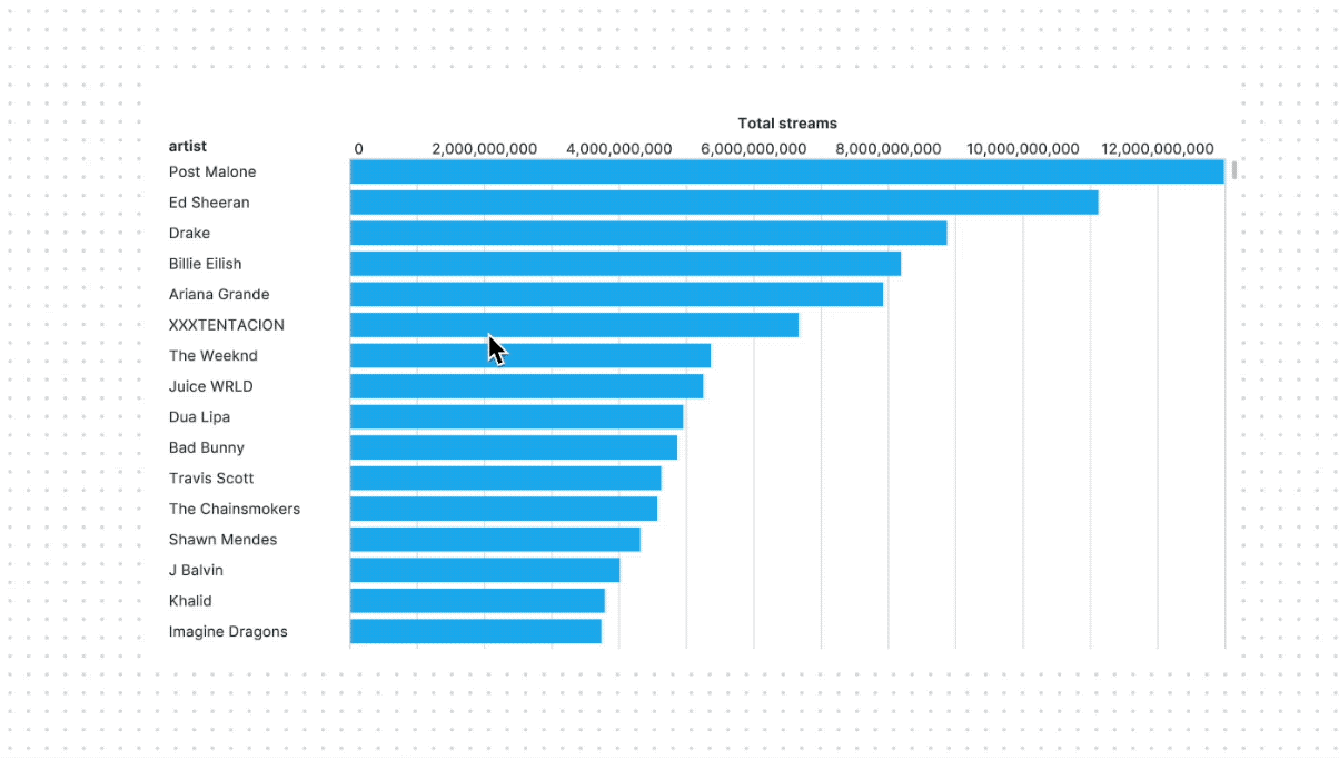Click directly on the axis to sort the data in its natural order for that data type. Click again to reverse the sort. Full sort options are available in the Display tab.