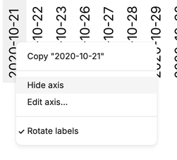 To rotate axis labels, right-click the axis and select Rotate labels. Labels can only be rotated for discrete mappings.