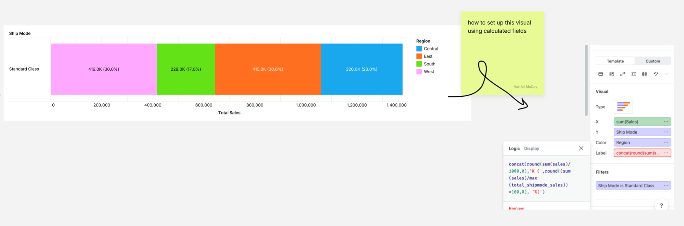 Option 1: using calculated fields in a label