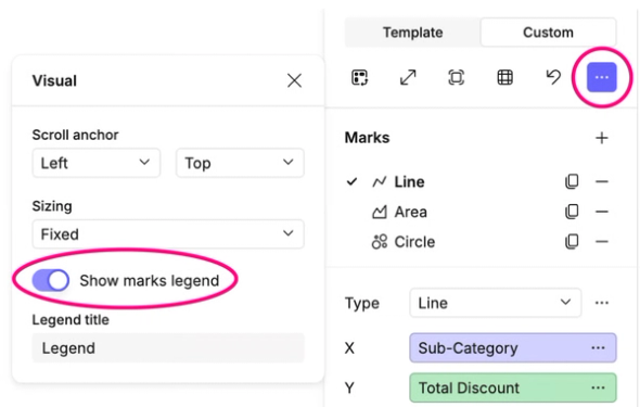 • To hide or show the legend click the ellipses (...) for the visual (which is just below the Custom tab) and toggle to show or hide it.