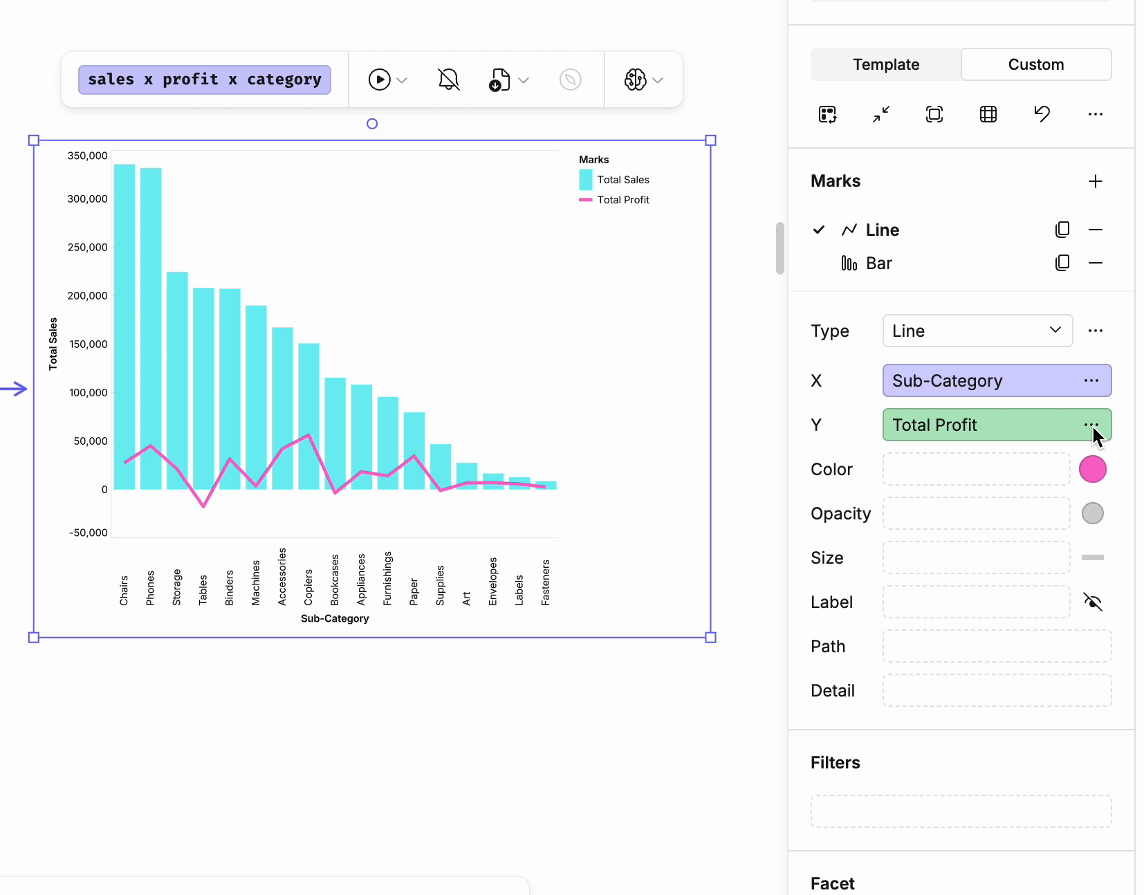 Learn > Visualizing Data > Formatting a visual > Secondary axisSecondary axisAdding a secondary axisClick on the 3 dots by the axis you want to moveClick on the Display tabToggle on Use secondary axisLoading...
