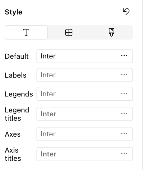 Defaultwill affect all categories. - Apply unique text styles to Labels, Legends, and Axes. Any changes made to individual categories will override the default settings.