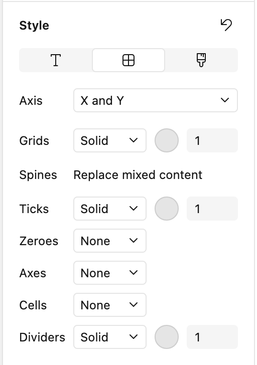 You can revert all style settings to their defaults by clicking the arrow icon at the top of the style options panel.