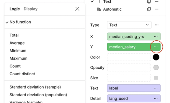 4. Set aggregations – use the ellipses (...) menu next to a field to choose totals, counts, averages, or other aggregates.