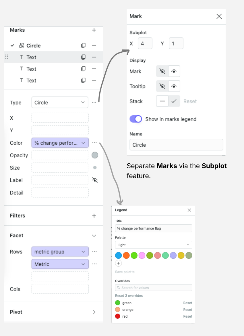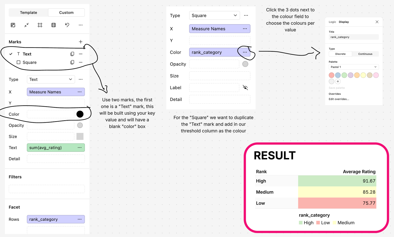 Once the summary column is ready, you can pull the summary performance field under a Circle or SquareMark.