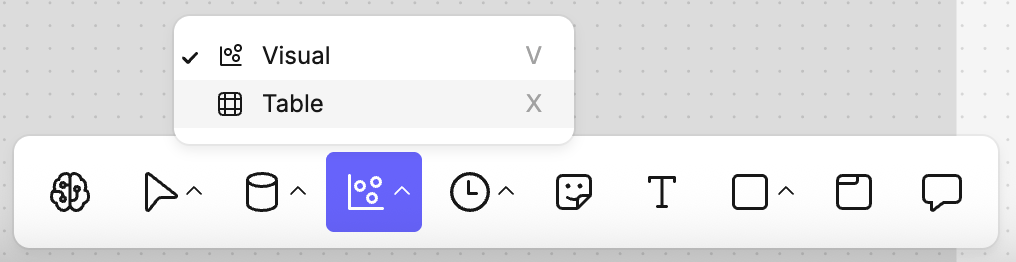 - Select an existing cell and press '+' (add a cell) -> select Table