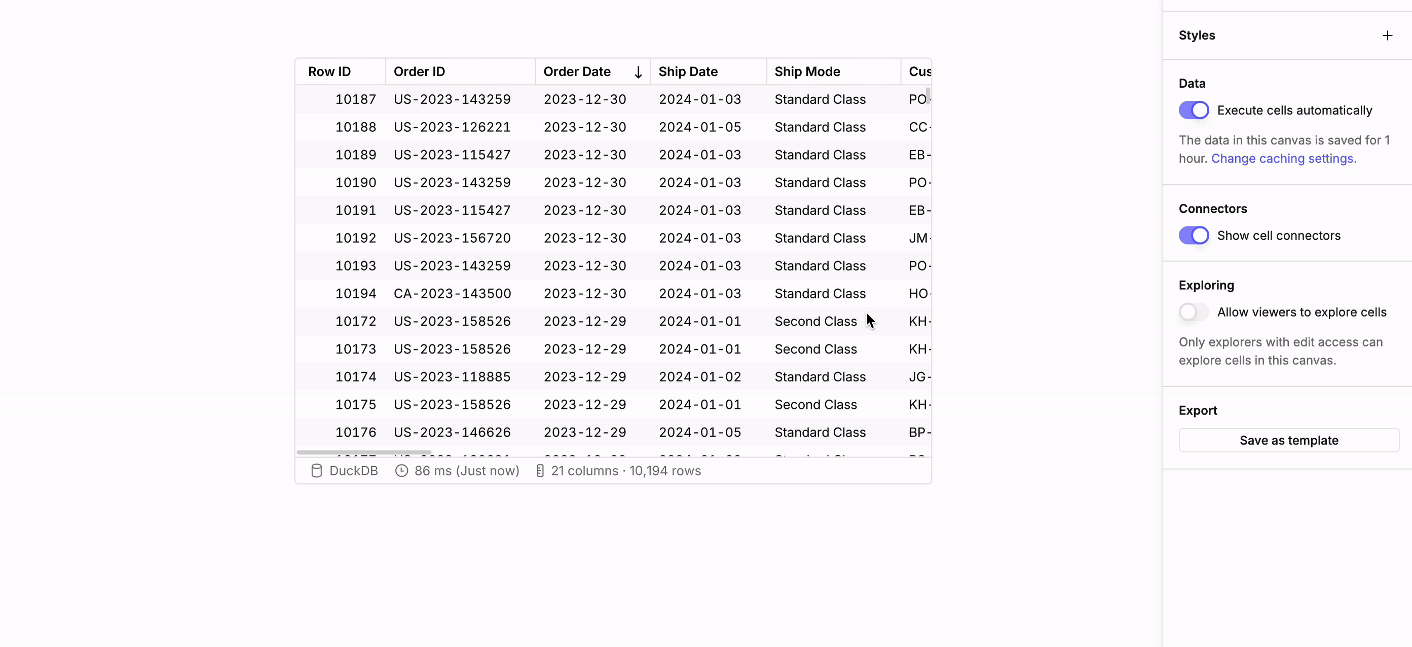 Once you've created a visual cell, templated visuals are the quickest way to start constructing a visual and exploring your data.