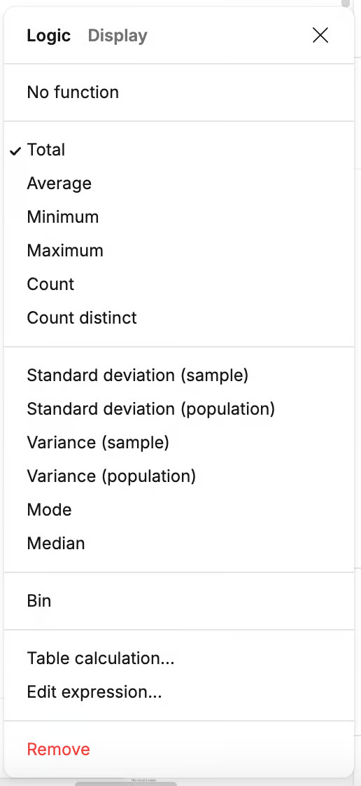 • Choose columns - Drag columns from the sidebar into the available slots for your chosen template.Once placed, you can configure each column using the ellipses (...) menu: